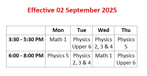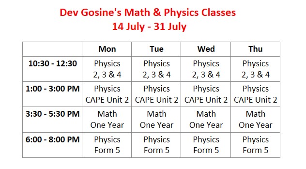 Classes are Monday to Thursday and will run for the first three (3) weeks of the vacation